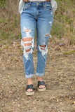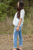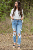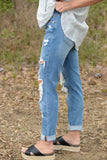 We can't keep these boyfriend jeans a secret any longer. These jeans have front and back pockets with a zipper fly. Our Tell Me a Secret Jeans are medium wash with distressing on the front. Now that the secret is out...check them out for your closet.