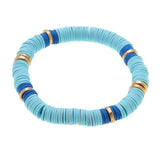 Designer inspired multi-colored stretch bracelet. The colors in this stretch bracelet are gorgeous and include turquoise and royal blue with hints of gold.