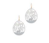 Celebrate Easter with these silver tone dangle earrings featuring an oval shape and a playful bunny. Perfect for adding a touch of festive elegance to any outfit. Make this holiday a memorable one with these Happy Easter earrings!