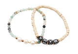 Set of 2 beaded bracelets. One multi-color beaded stretch bracelet. One natural color beaded bracelet with black beads that spell out "MAMA". Wear them together or alone.