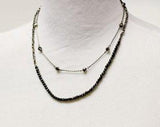 This double layered necklace features a layer of single hematite glass beads and a second hematite layer. This necklace is lightweight and adds the perfect amount of pretty to any outfit.