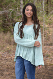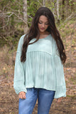 Get in tune with your mint side in our YOUR FAVORITE SONG MINT TOP.  This mint top has all the right details with its romantic balloon sleeve and v strap back.  This top is perfect for pairing with jeans or pants and lightweight enough to wear with shorts.
