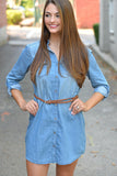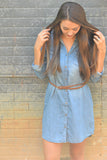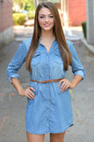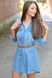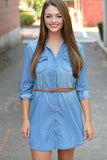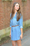 No worries about what to wear when you have our Stress Less Denim Tunic Dress in your closet. This denim beauty is ever so versatile. Wear it as is or pair it with leggings. This denim tunic dress features a button up, belted style with cuffed long sleeves. If comfortable, fashionable, and versatile are closet criteria for you...stress no more...this one is for you! Belt included.