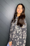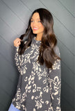 This super soft brushed charcoal animal print long sleeve top is screaming to be in your closet! We love the cowl neck and curved neckline. This top is amazingly soft!