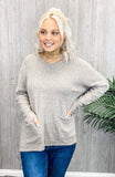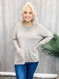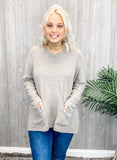 This brushed beauty is so cozy + cute. Made of a heathered oatmeal fabric, this top features two front pockets, long sleeves, and a relaxed fit. This is SO good to throw on with leggings, jeggings, or even jeans and a long necklace.