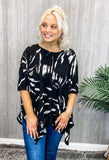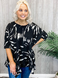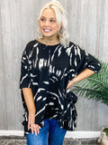 Our Sway This Way Top is definitely one you want to snag before it's gone! This oversized poncho style from Jodifl is one of our bestselling tops EVER and this NEW black + white print is SO good. Made of a lightweight knit, this black top features adorable white brush strokes, half sleeves, an asymmetrical hemline, and a flowy oversized fit. Easily dress this up with slacks for work or keep it casual with just leggings.