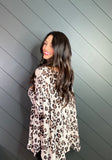This relaxed fit poncho style animal print lightweight knit beige top is so easy to dress up or down. This flattering fit top has fitted sleeves and a flattering oversize bodice.