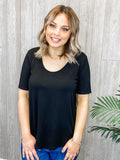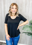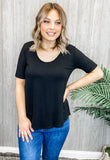 This basic is sooo good and a staple for any closet. This top features a scoop neckline, short sleeves, and a relaxed missy fit. This top is incredibly soft and feels amazing. You can dress this up with accessories, wear under kimonos & sweaters, or just throw it on with jeans and go.