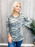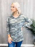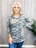Cozy, Cute, and Camo? A total add to cart! This top features a v-neck, long sleeves, tunic length, and a super soft brushed fabric. Pair this with athletic leggings for a casual look or dress it up with black jeans. You don't want to miss out on this closet staple!