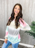 Blanket soft, this lightweight top screams Spring! We are loving the color combo and subtle watercolor ombre effect. Pair this with leggings, jeans, or even white skinnies for a cute Spring look!