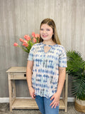 This ombre tie dye top is so cute! It has a v-neck cutout that gives this top an extra detail that we are loving. It is short sleeve and has a mix of blue and soft pink throughout the ombre background. Pair with shorts or jeans!