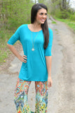 Ocean Blue Piko Style Bamboo Top with 1/2 Sleeves