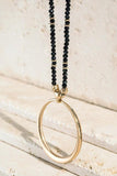Talk about classic! This black necklace is such a staple to match alllll the things. A gold toned ring pendant is paired with shimmery black glass beads.