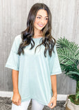 Love is easy in this cute and comfy top. This not so basic top is loaded with details such as the crew neckline, short sleeves, exposed seams, exposed center back seam, and slight high low hemline. Grab one of these lightweight tops in each of the three yummy colors. These tops are perfect alone or pairing with a jacket or kimono.